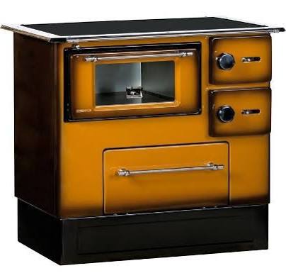 - Sporák s troubou určený na ohřívání a pečení vyrobený v kombinaci materiálů litina a ocel, smaltovaný ocelový plášť a šamotové desky.