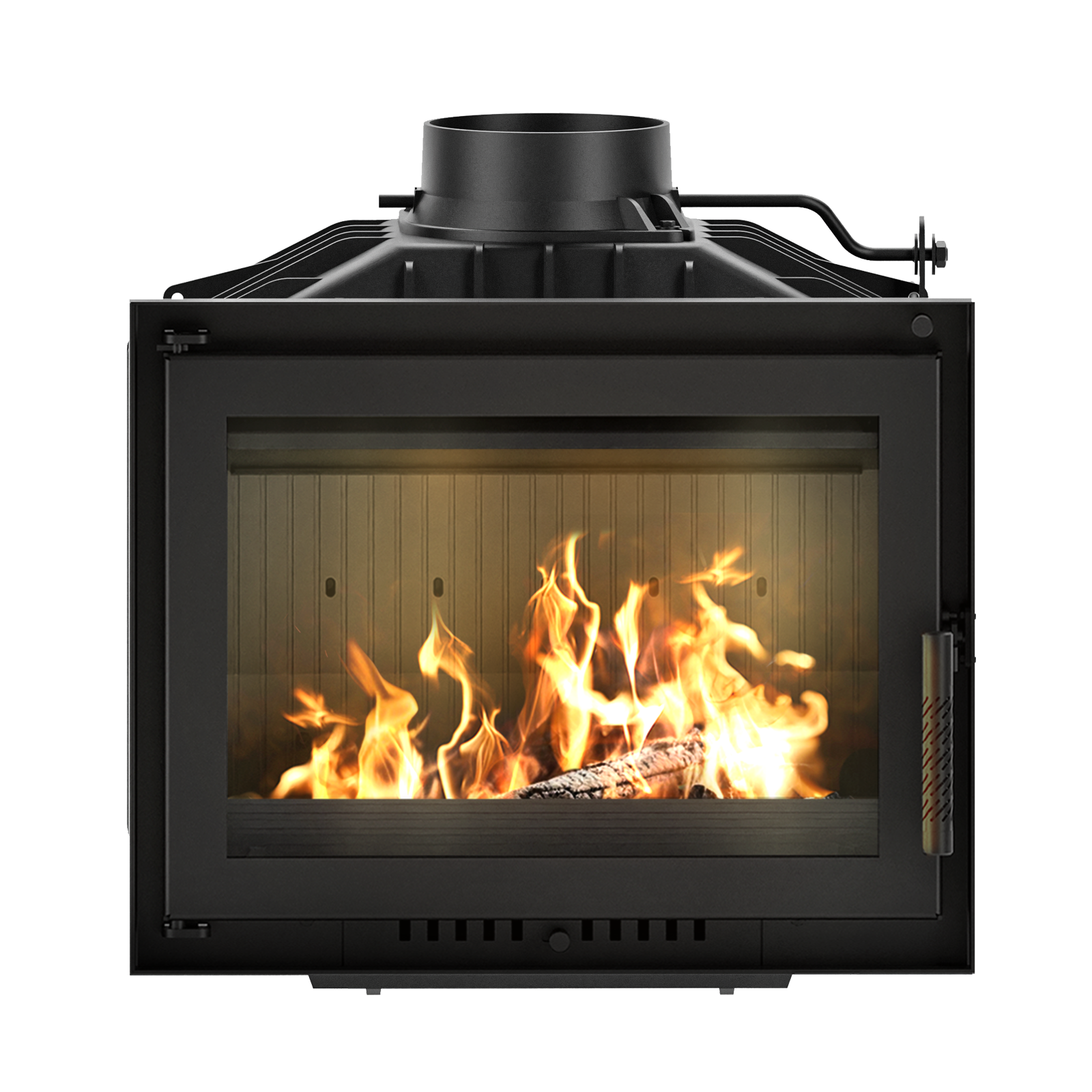 Dominantou vložky je velké čelní prosklení dvířek, které poskytuje příjemný pohled na plameny a vytváří útulnou atmosféru v obytném prostoru. Integrovaný systém proudění vzduchu pomáhá udržovat sklo déle čisté, takže si můžete dlouhodobě užívat ničím nerušený pohled do ohniště.