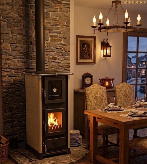 Teplo i chutné jídlo: Zatímco kamna vyhřívají místnost, v prostorné troubě s teploměrem můžete péct a na horní litinové plotně vařit. Ideální řešení pro nezávislost na elektřině či plynu.