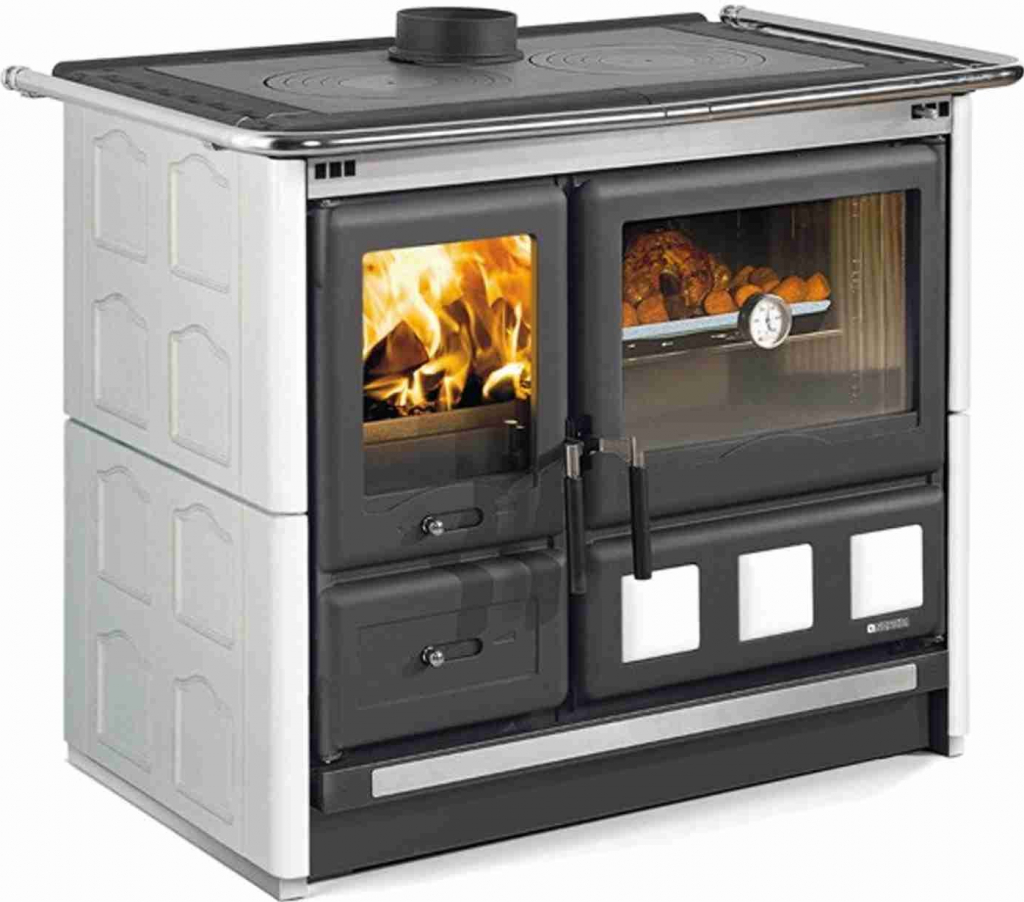 Kuchyňský sporák Nordica Rosa XXL Maiolica 8,5 kW s velkou troubou s keramickým opláštěním má jmenovitý výkon 8.5 kW, účinnost 85 %.