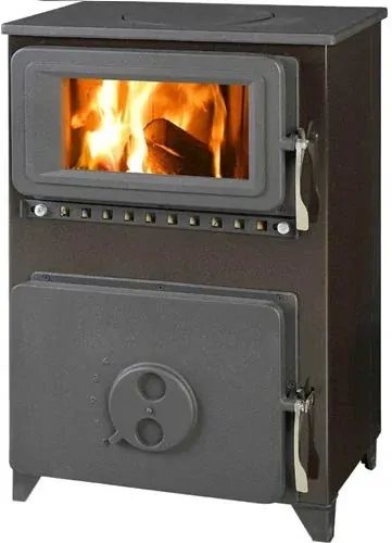 Horní část kamen je z litiny, a tak hned po zatopení dává příjemné teplo, stejně jako sporák přes plotnu.